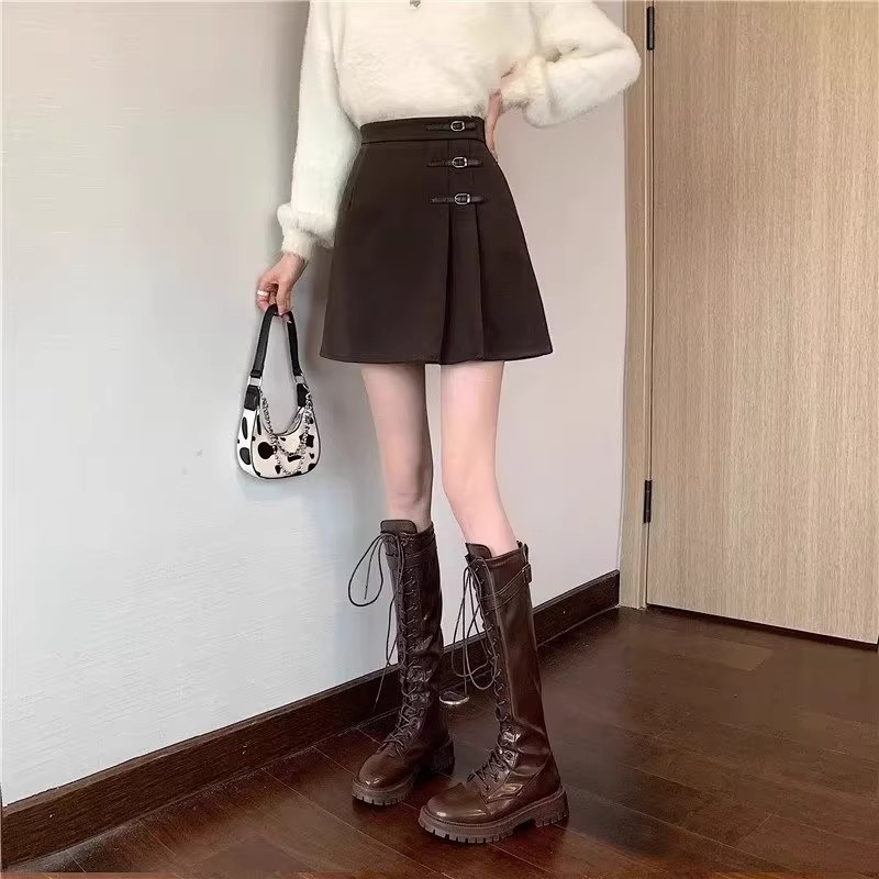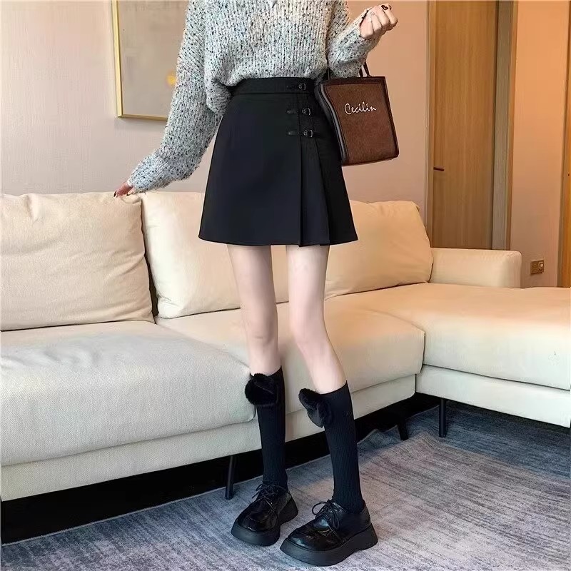 学院风毛呢百褶裙大码a字短裙裤