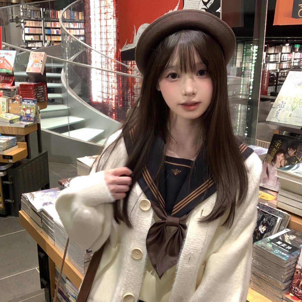 JK制服秋季水貂绒温柔风毛绒绒针织开衫慵懒宽松毛衣外套女中长款