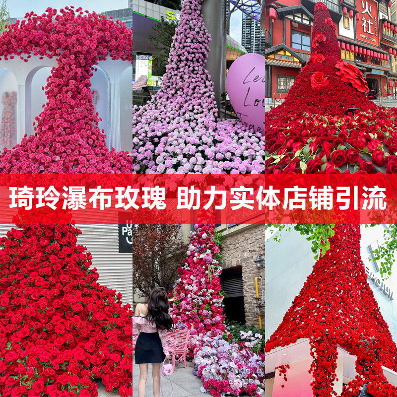 玫瑰瀑布仿真仿真花假花布置冰川商场车展网红引流打卡玫瑰花花墙