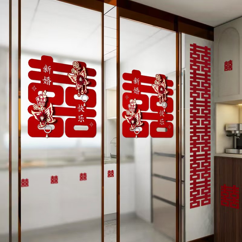 喜字贴婚房布置立体门贴结婚装饰专用囍大门口全套婚礼用品大全