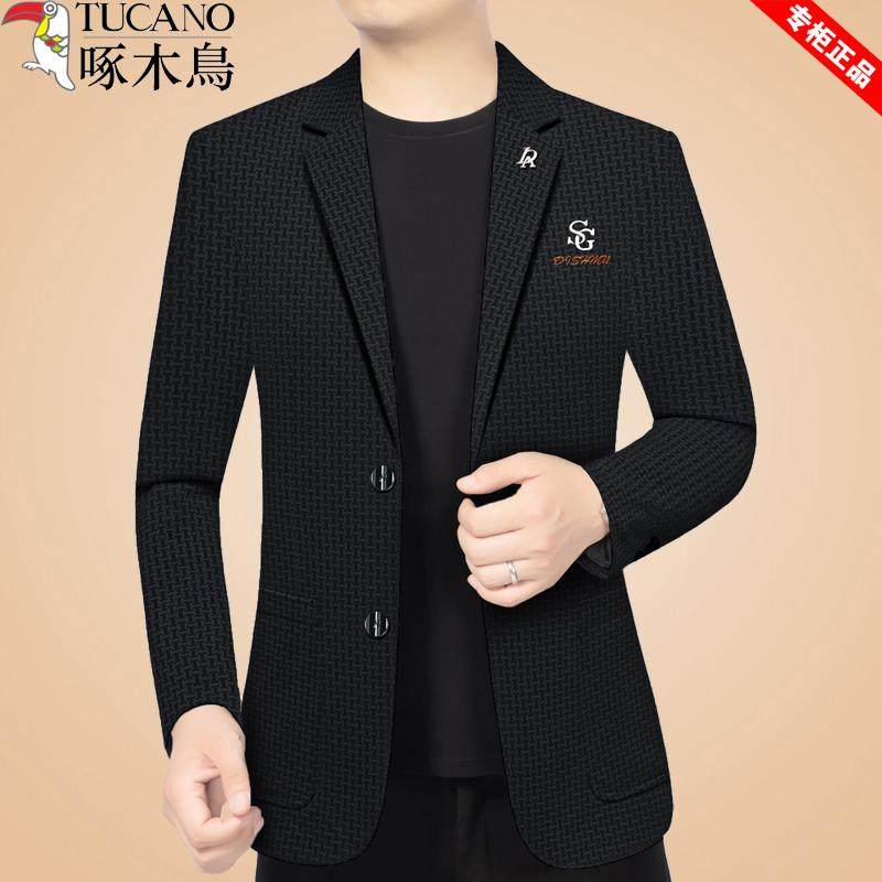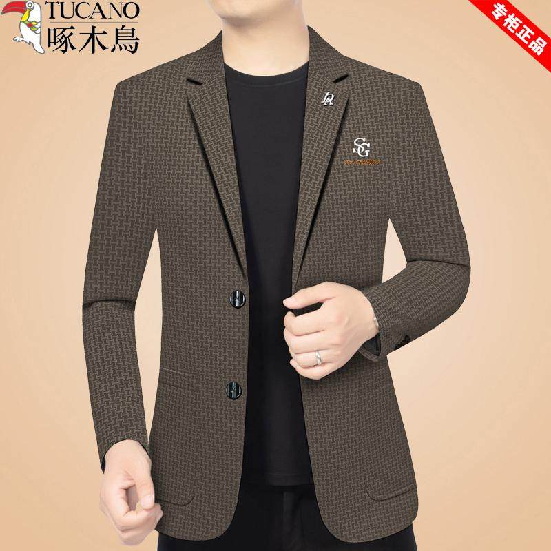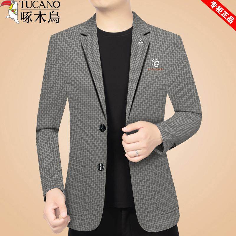 啄木鸟西装外套男2025春秋季新款中青年男士休闲西服单西上衣爸爸