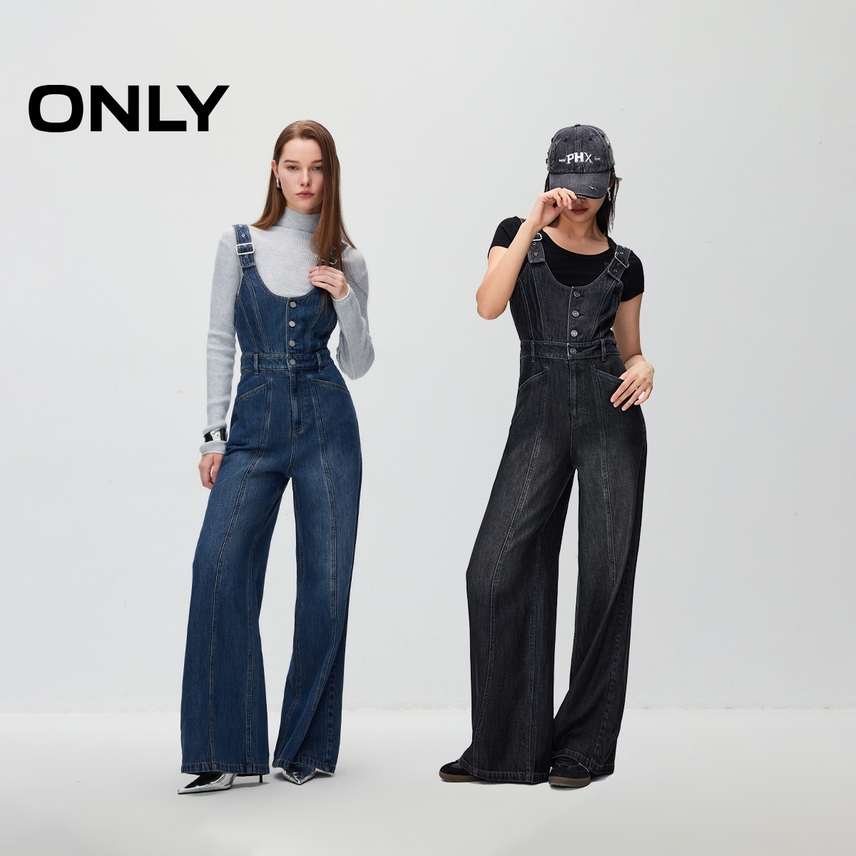 【ONLY奥莱】秋季休闲百搭显瘦高腰背带裤牛仔裤女