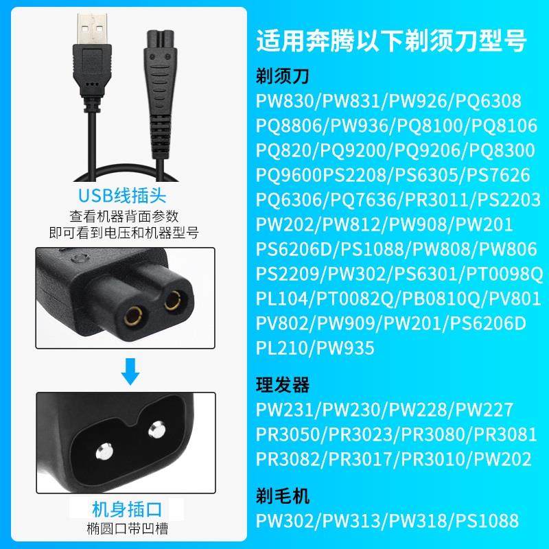 适用奔腾电动剃须刀充电器电源线PW926 936 830 831 PQ9206 9600