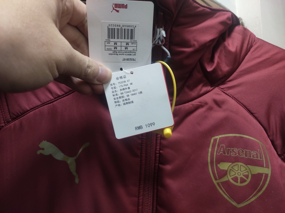 英超阿森纳球员版男长款棉衣棉服连帽子双面穿