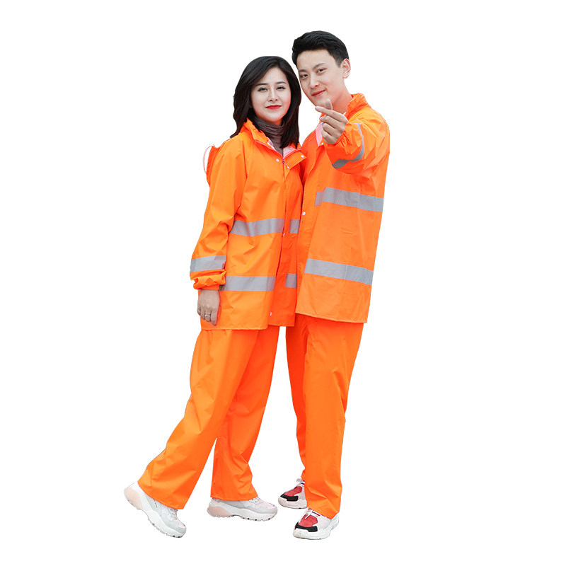 环卫雨衣雨裤套装男保洁橙色带反光条分体式道路施工清洁工人工地