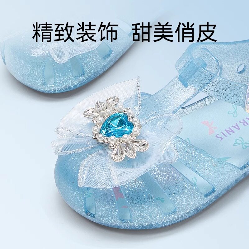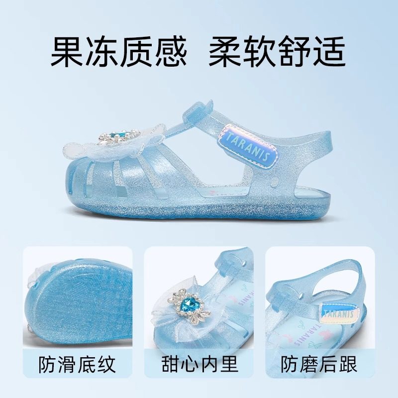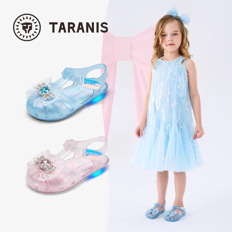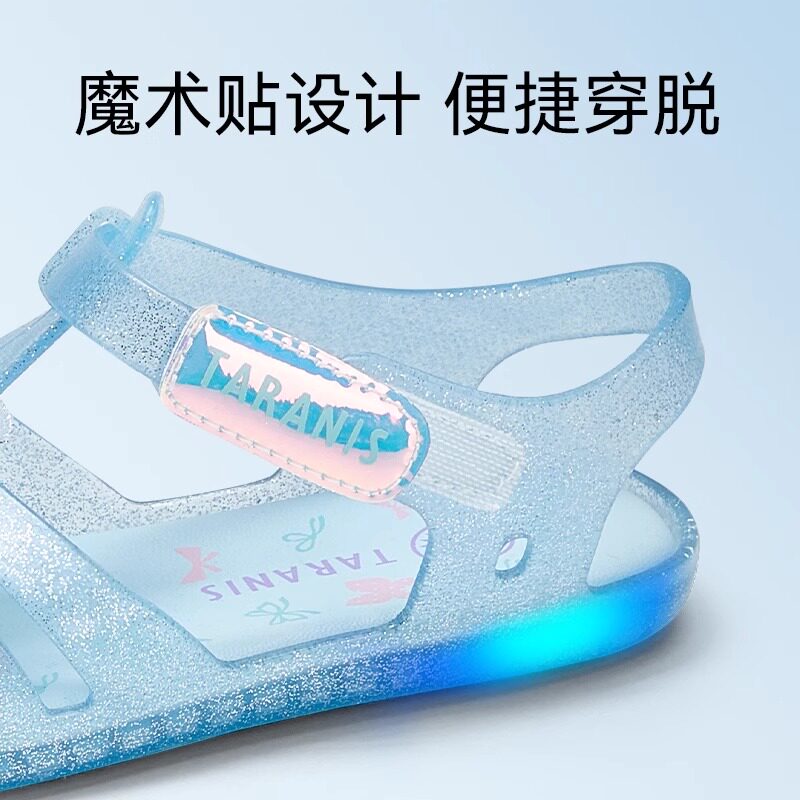 泰兰尼斯童鞋公主闪灯鞋水晶鞋果冻凉鞋缕空软底鞋女童粉色透明鞋
