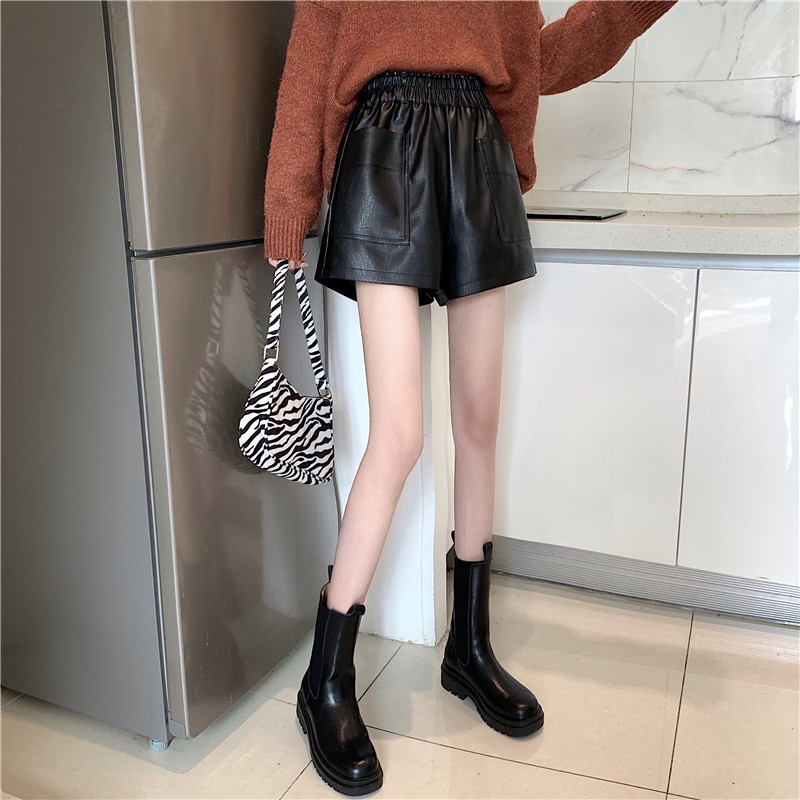 2025春季新款韩版宽松百搭阔腿裤显瘦高腰休闲裤女外穿靴裤皮短裤