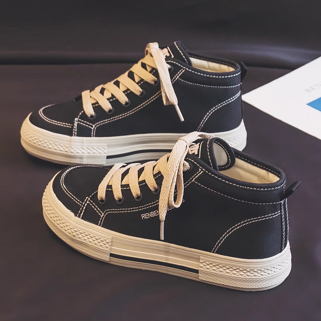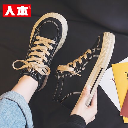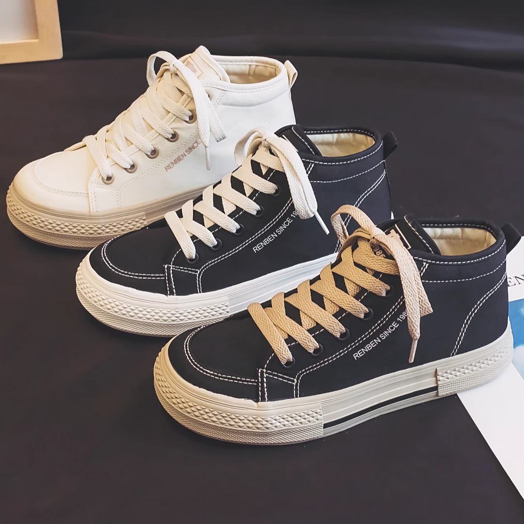 人本高帮帆布鞋女厚底超火大头休闲鞋学生ins透气运动百搭板鞋子