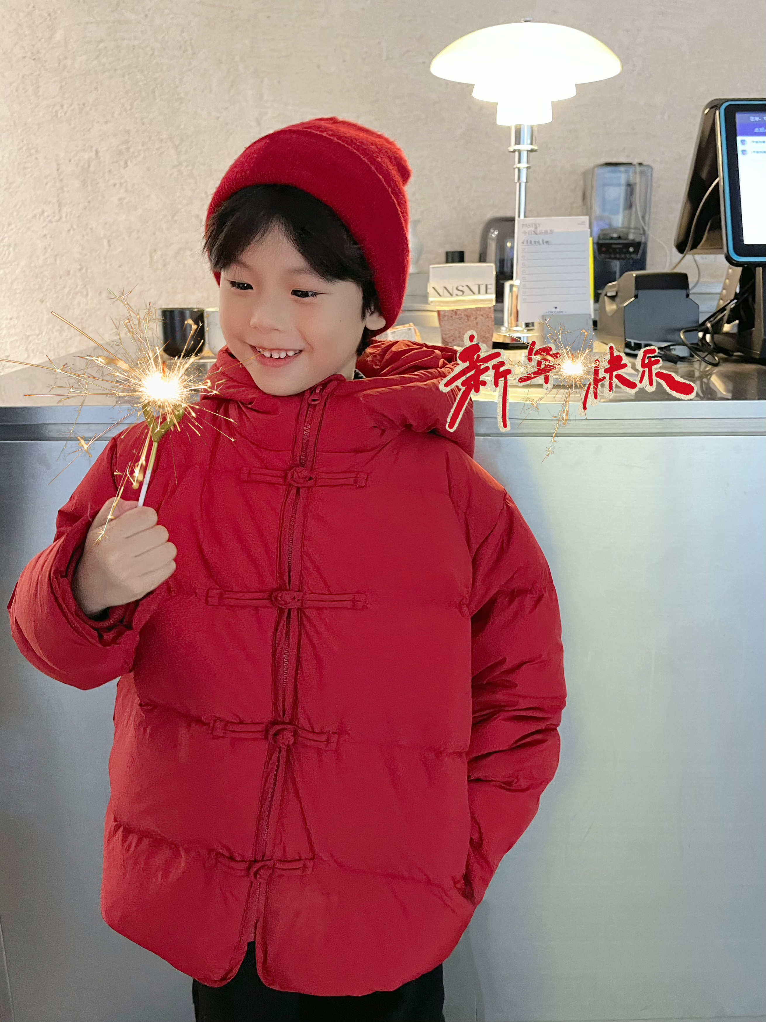 儿童红色羽绒服冬拜年服霖霖妈童装男童新年外套宝宝白鸭绒新中式