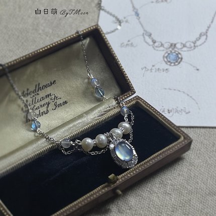 新品海盐 白日萌原创海蓝色宝石项链纯银珠宝套装送礼vintage风