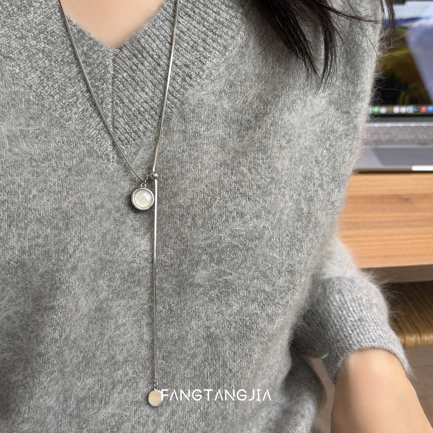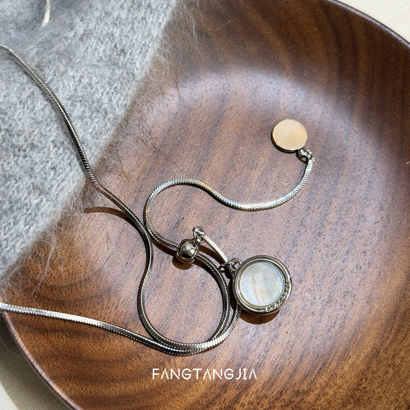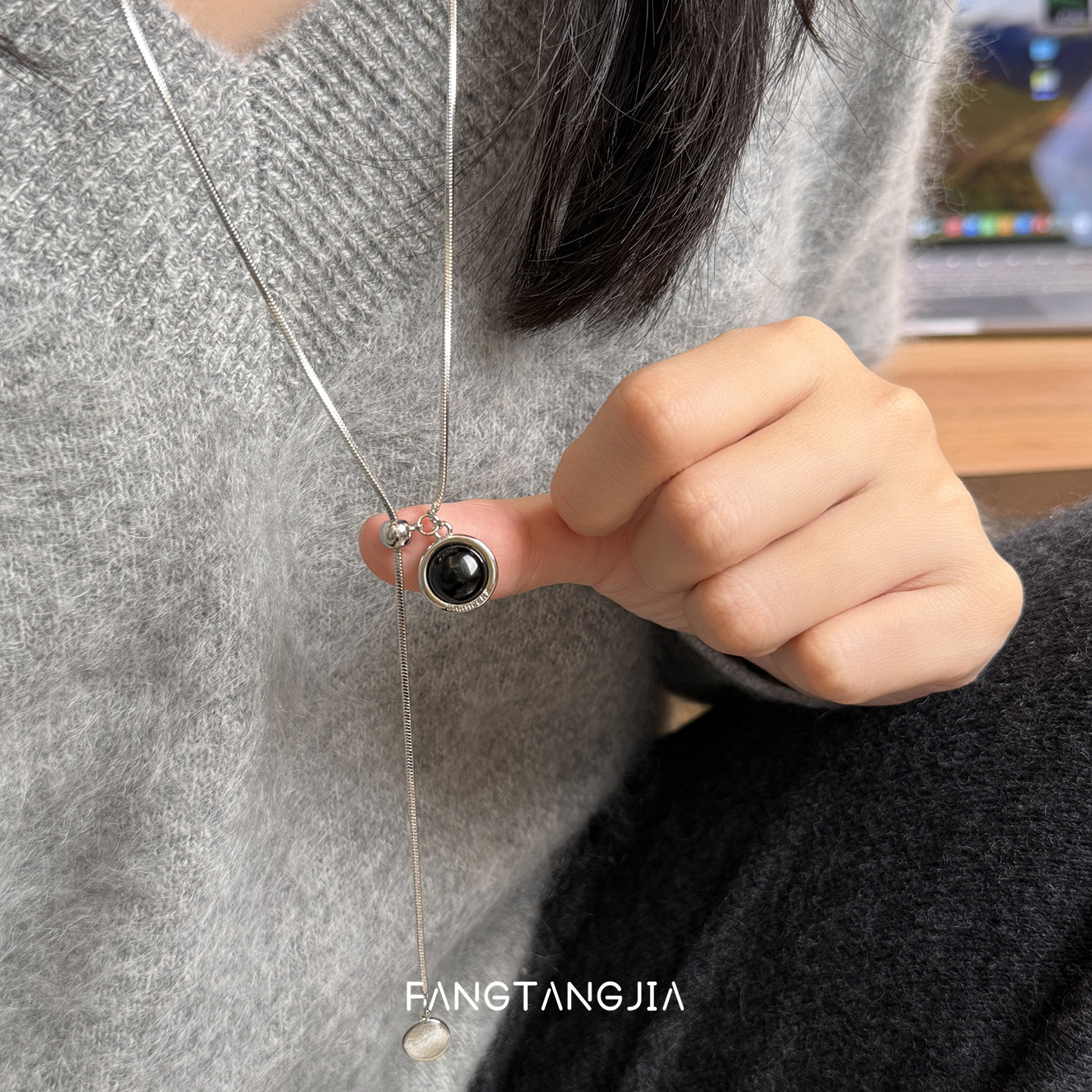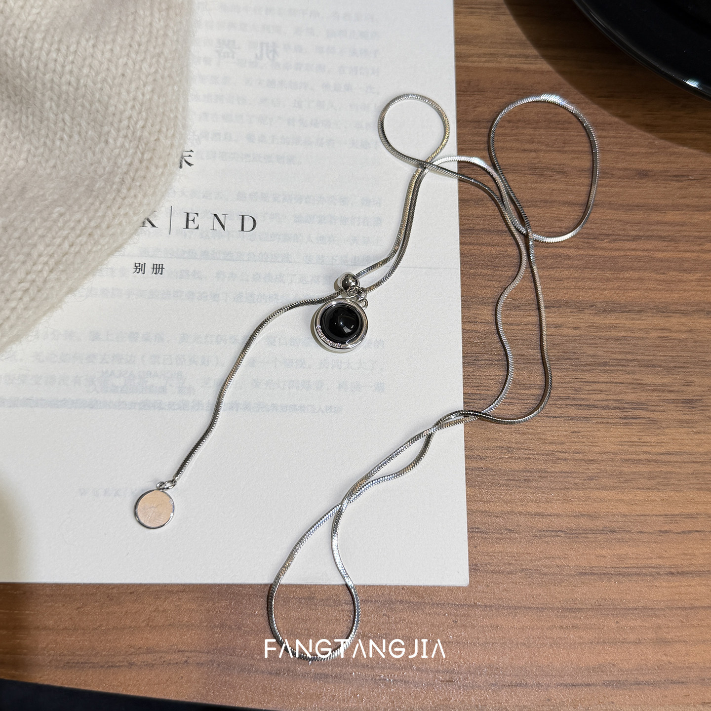 方糖家 双面戴黑玛瑙贝母秋冬复古蛇骨抽拉毛衣项链2025新款高档