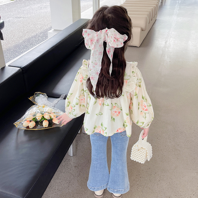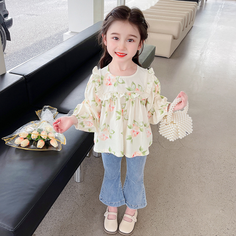 女童长袖衬衫春秋新款童装洋气娃娃衫女宝纯棉衬衣外套儿童上衣女
