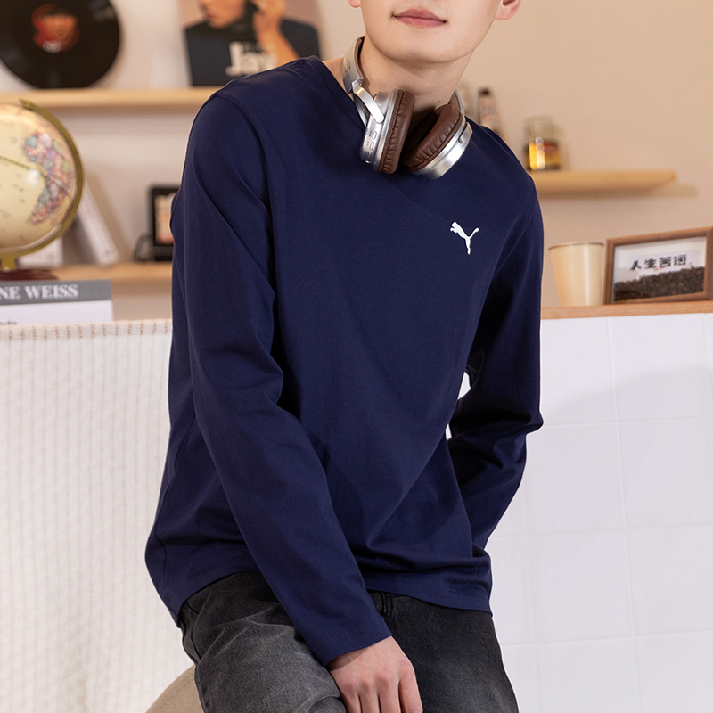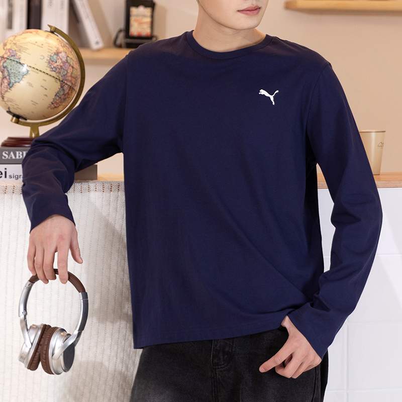 PUMA彪马男子纯棉长袖T恤衫2025秋季新款圆领休闲内搭宽松运动服