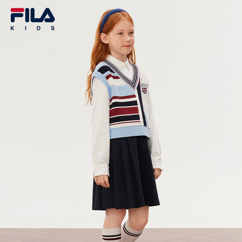 FILA X HARVARD哈佛联名童装连衣裙2025年秋季新款女中大童两件套