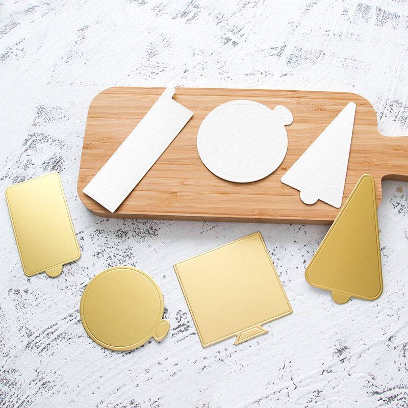 白卡纸西点托三角长方食品级圆方形印花金色一次性法式甜点托盘