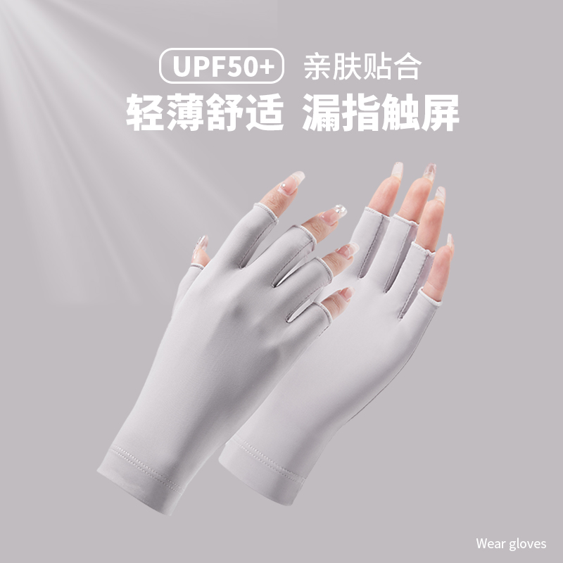 防晒手套女夏天防紫外线薄款开车骑行防滑冰丝半指夏季美甲防烤黑