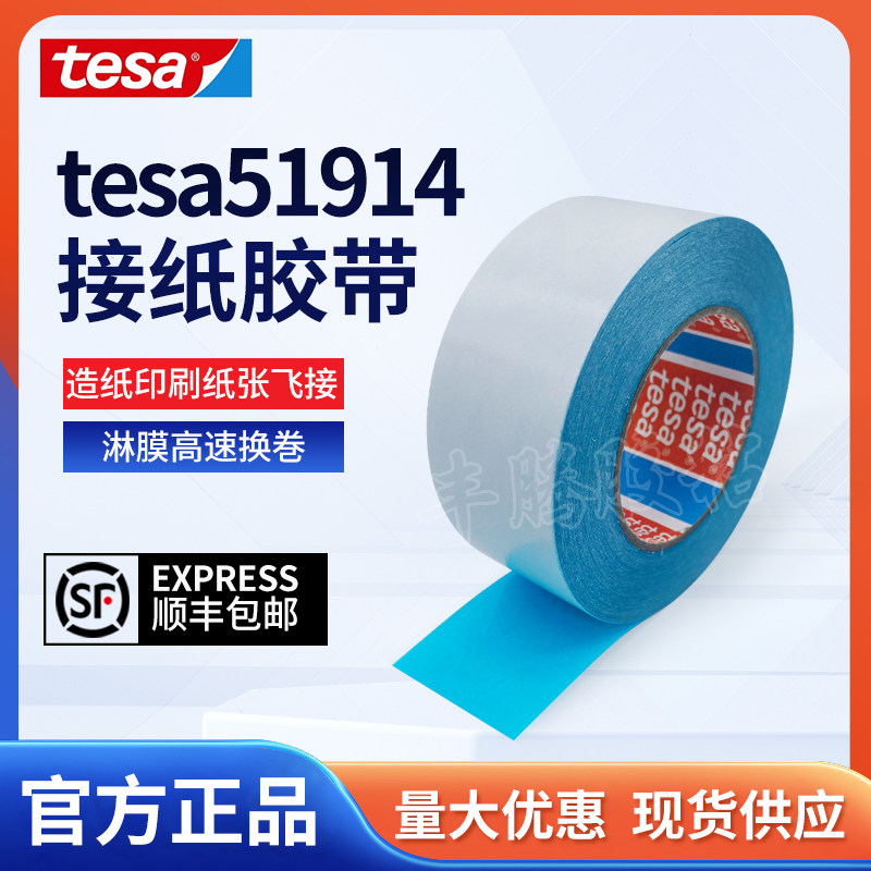 tesa德莎51914蓝色水溶性双面胶带造纸印刷纸张飞接高速换卷接驳