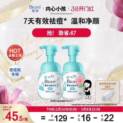 【开门红抢购】Biore碧柔洁面泡泡(祛痘型)160ml 痘痘肌专研温和