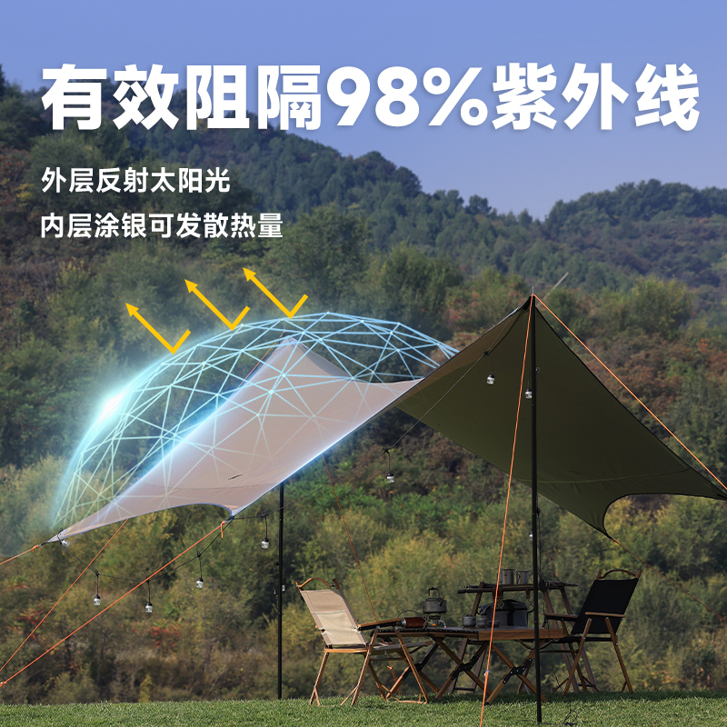 AT天幕帐篷户外涂银蝶形遮阳棚z露营防晒防雨野营装备防风六角幕