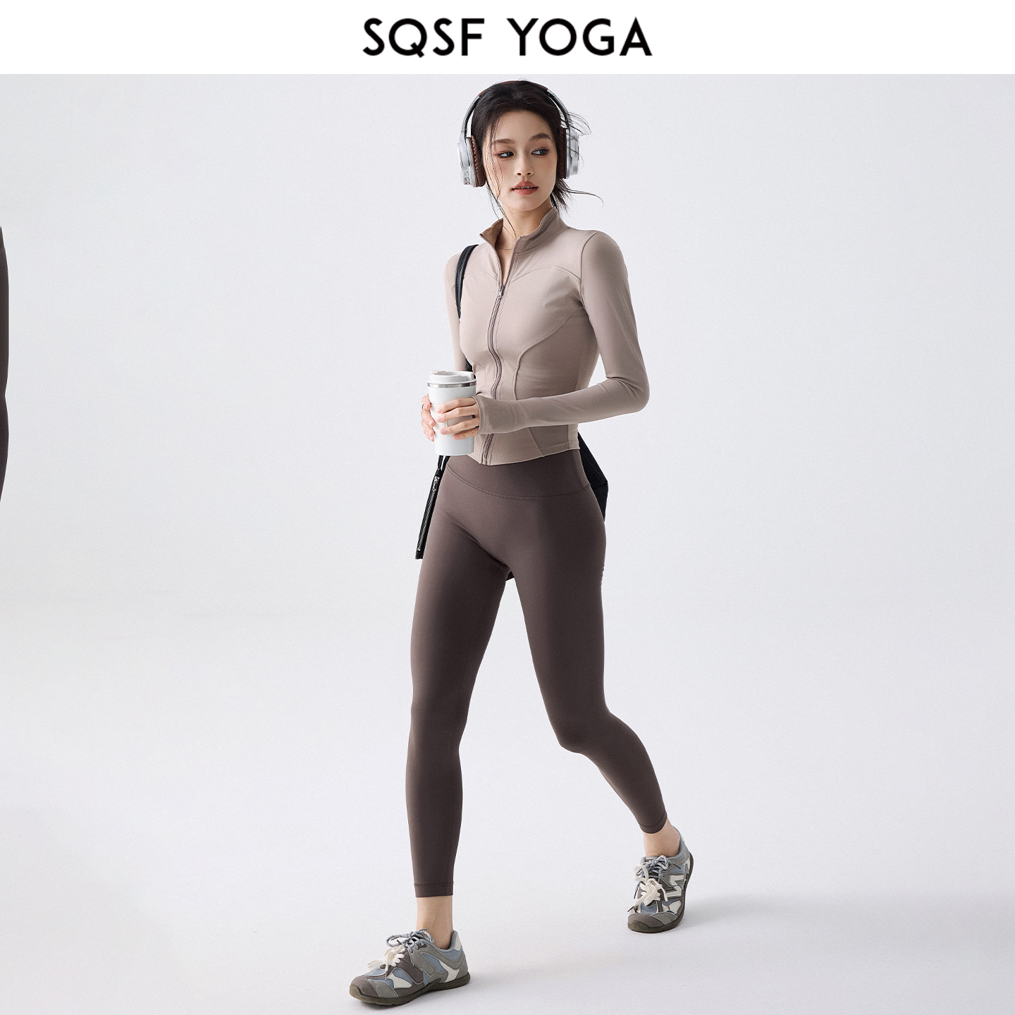 SQSF运动外套女秋冬修身立领夹克瑜伽上衣跑步训练速干健身服套装