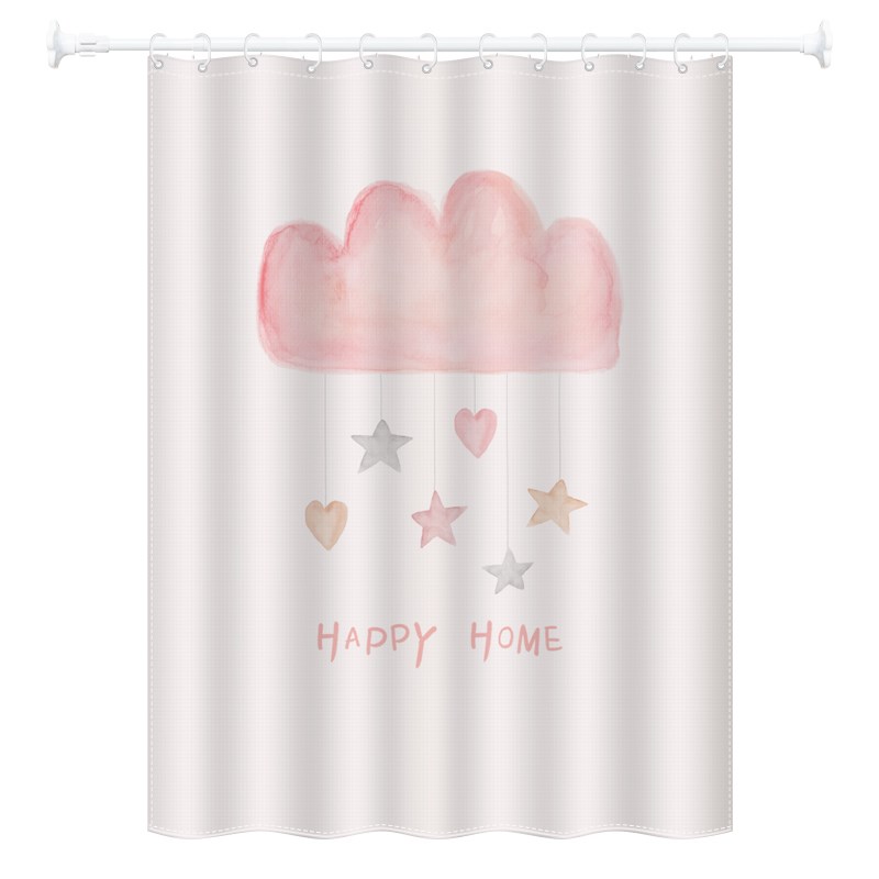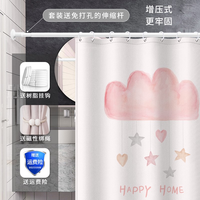 粉色卡通浴帘套装免打孔 卫生间隔断帘加厚防霉涤纶浴室挂帘