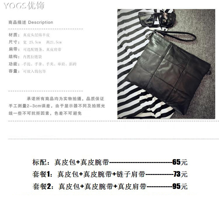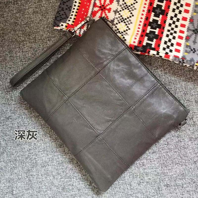 红花银桦手工真皮男女士信封手拿包大容量软皮手抓包商务羊皮夹包
