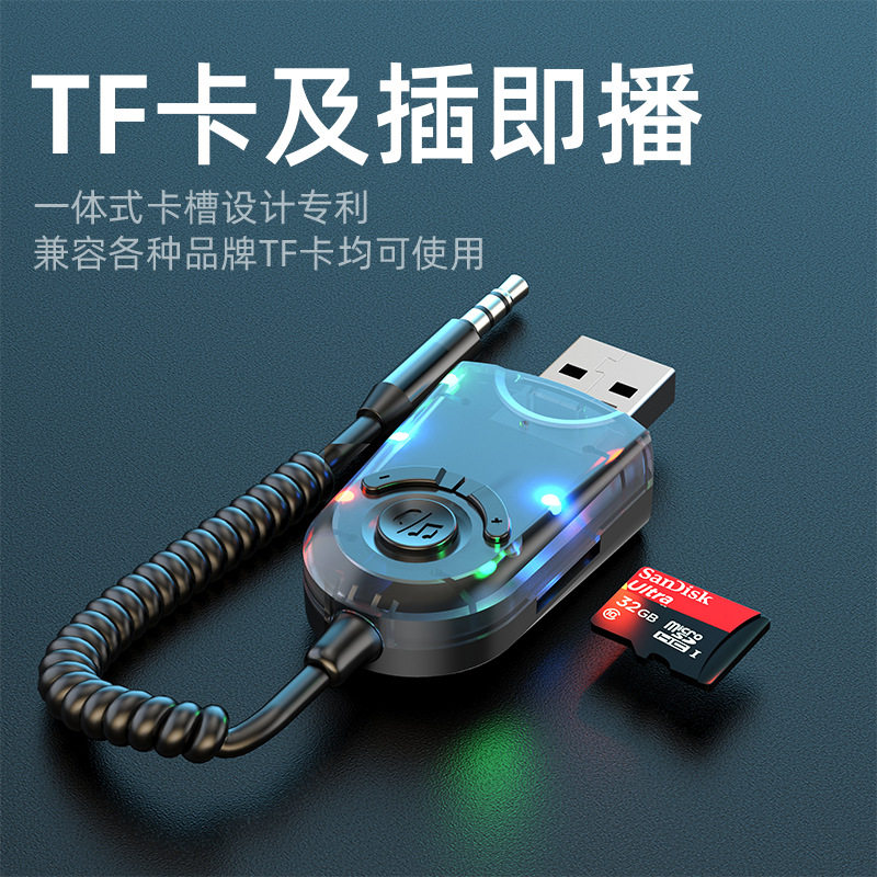 新款FM蓝牙5.3发射接收器车载MP3手机音频适配器汽车无线蓝牙音响