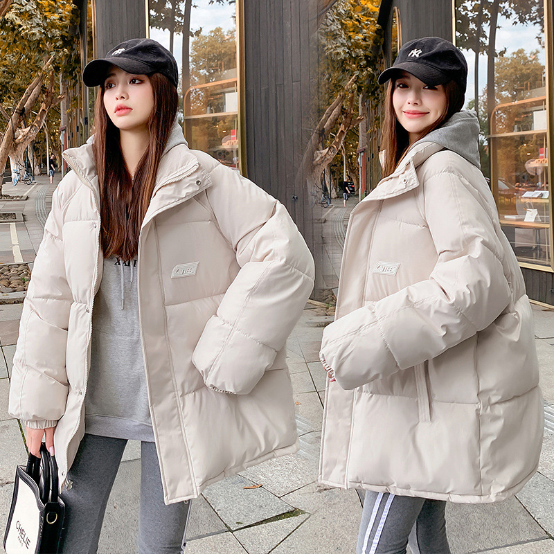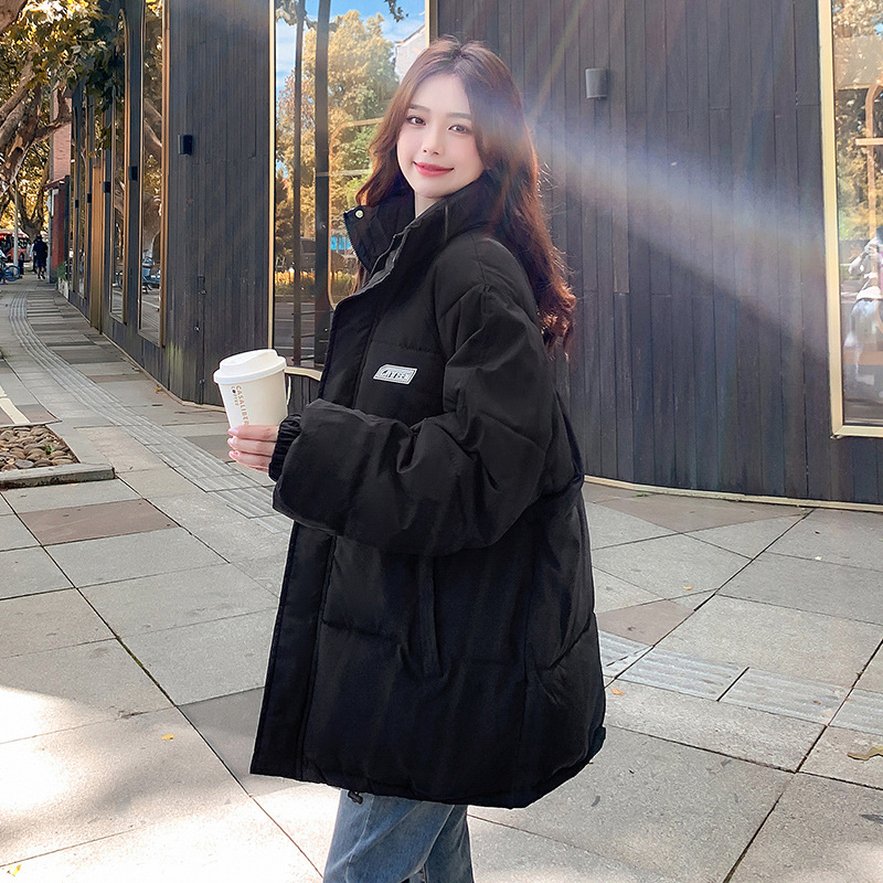 通勤羽绒棉服女短款加厚韩版学生面包服长袖立领宽松纯色棉衣外套