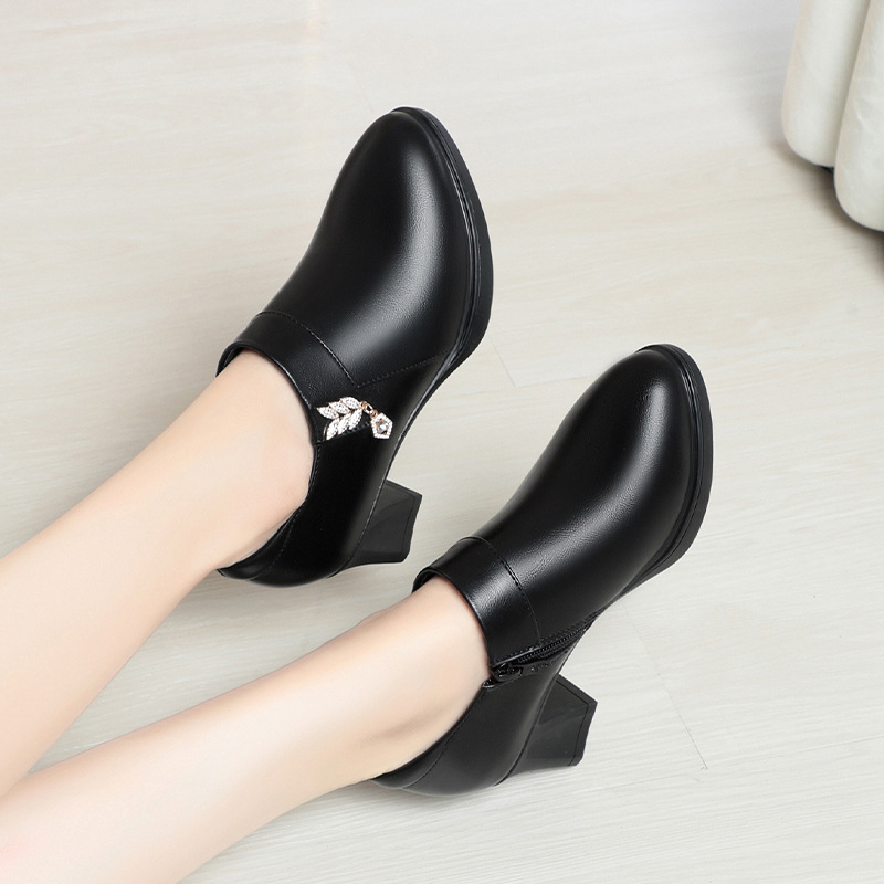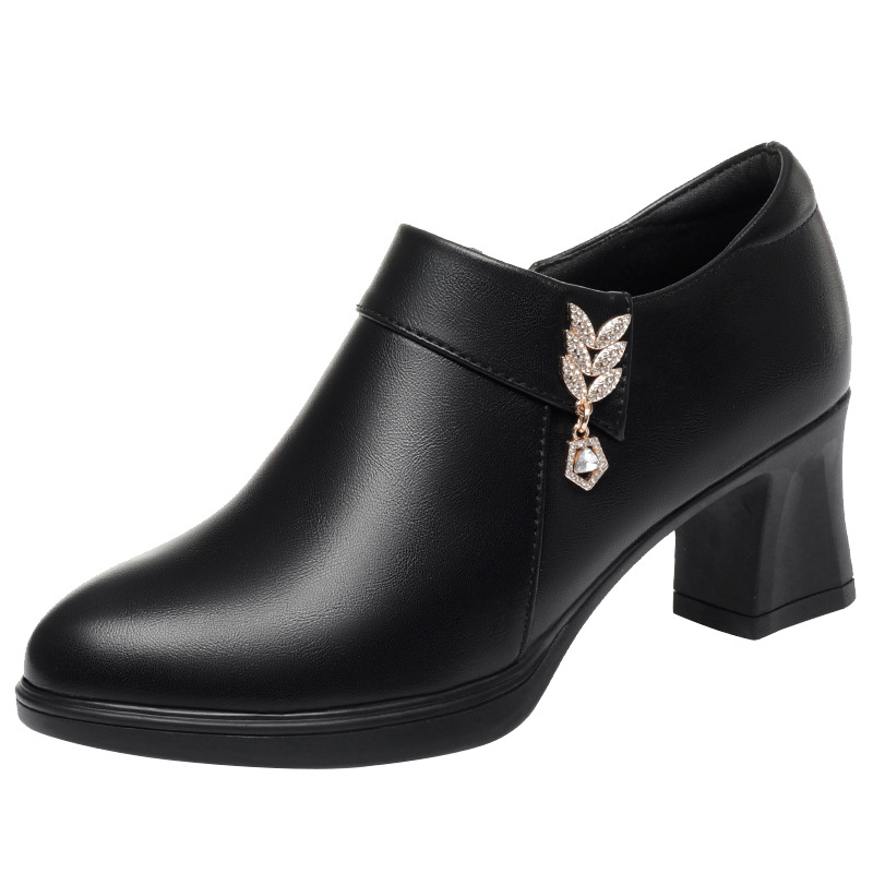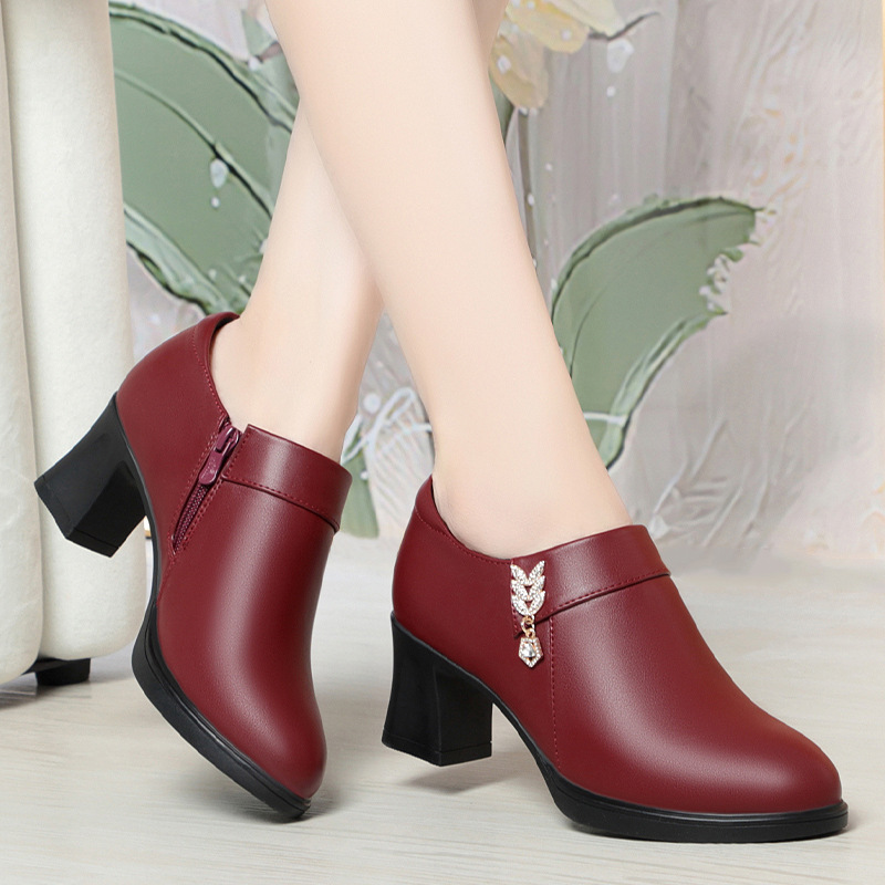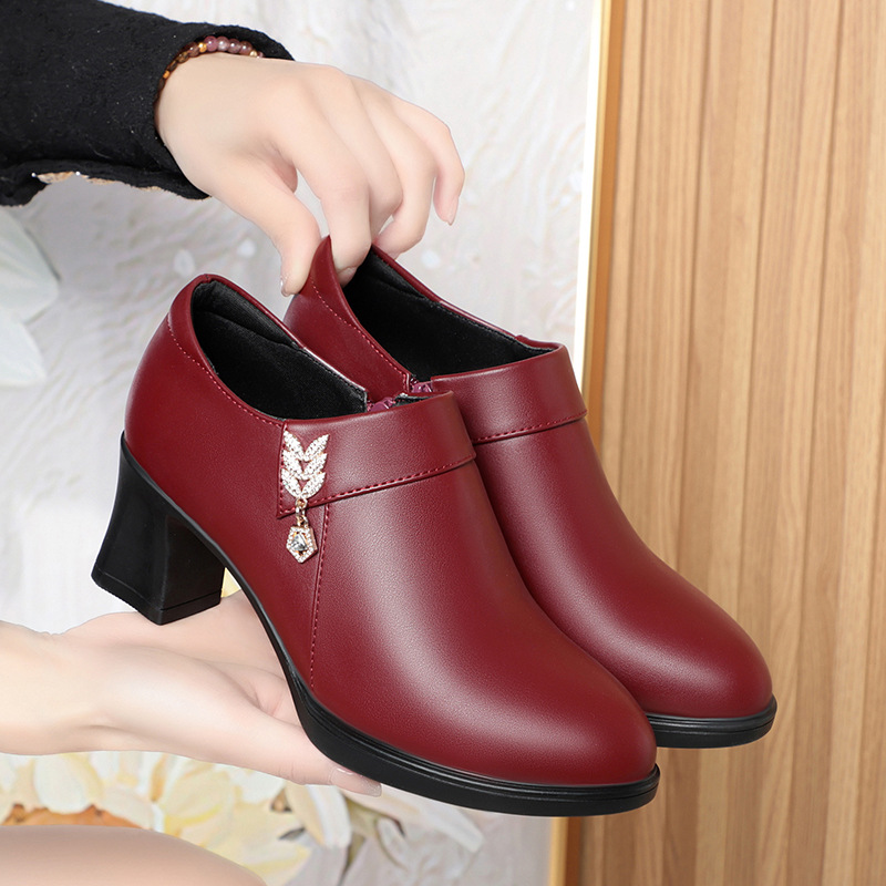 妈妈鞋子春秋款2025新款中年女皮鞋软皮中跟单鞋舒适女鞋一件代发
