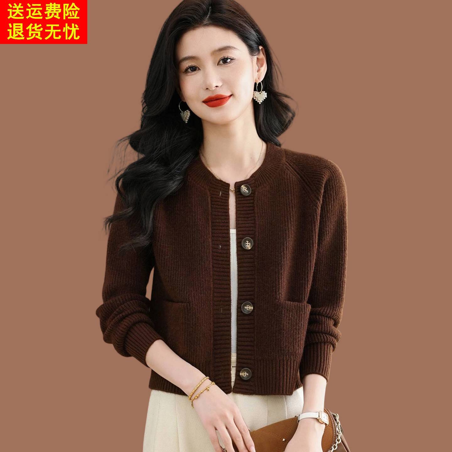 羊毛针织开衫外套女士2025秋季新款高腰短款配裙子毛衣披肩小外套