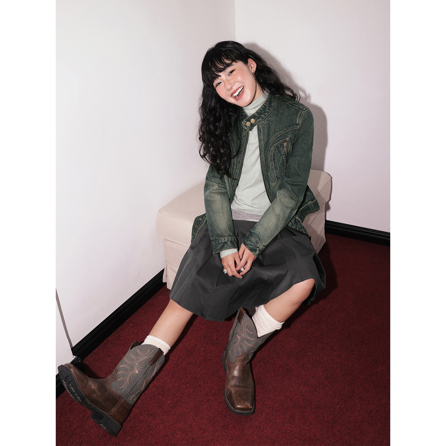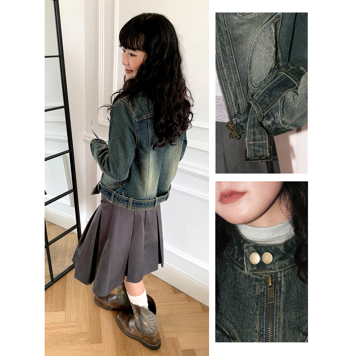化学少女「漫游旧章」复古水洗做旧修身牛仔夹克外套女早秋新款