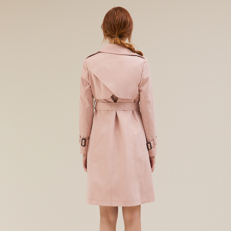 SMITHPOLOV斯密特保罗秋季新款中长款粉色风衣外套女英伦收腰女装