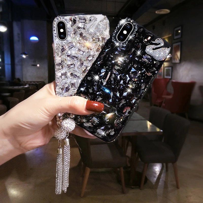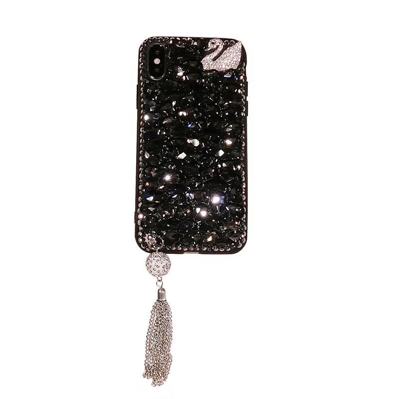 适用苹果iphone15plus14pro131211promax手机壳创意Xsmax女款XR奢华天鹅水钻6s78plus全包防摔软壳流苏宝石潮