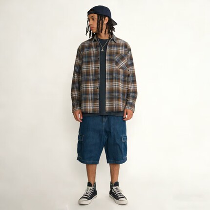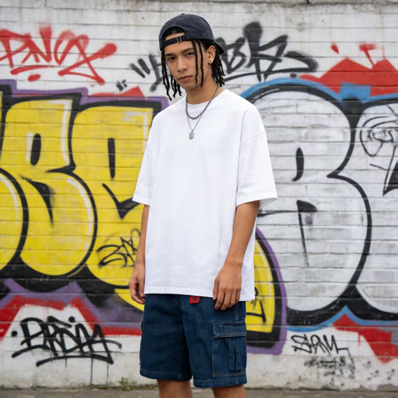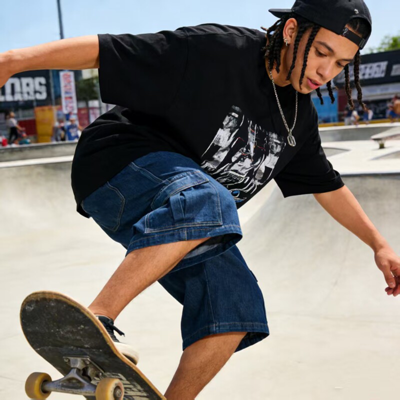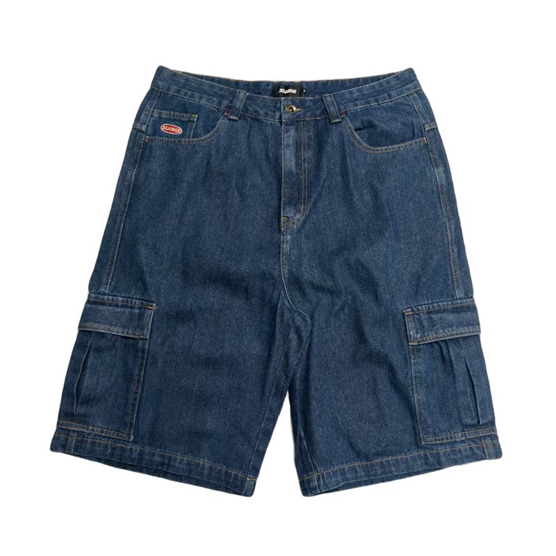 美版 复古工装滑板嘻哈街头hiphop 美式经典刺绣 宽松牛仔七分裤
