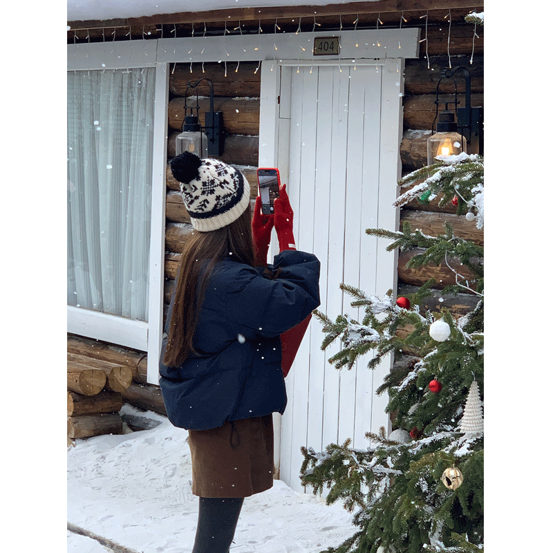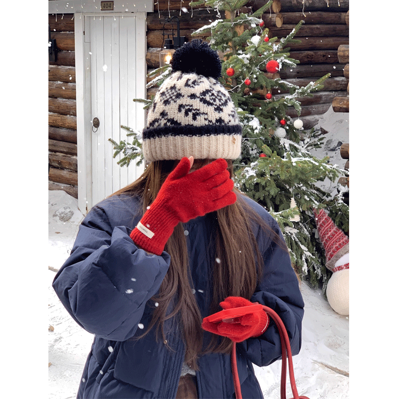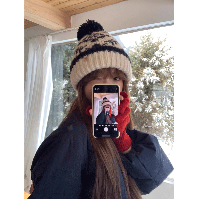 芝士商店~费尔岛毛线帽女秋冬保暖帽子防寒毛球针织帽显脸小冷帽