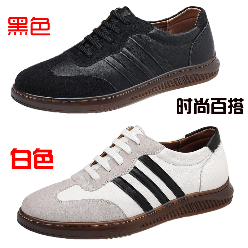 头层牛皮男夏季男士休闲皮运动皮鞋真皮牛筋底韩版男鞋小白鞋跑鞋