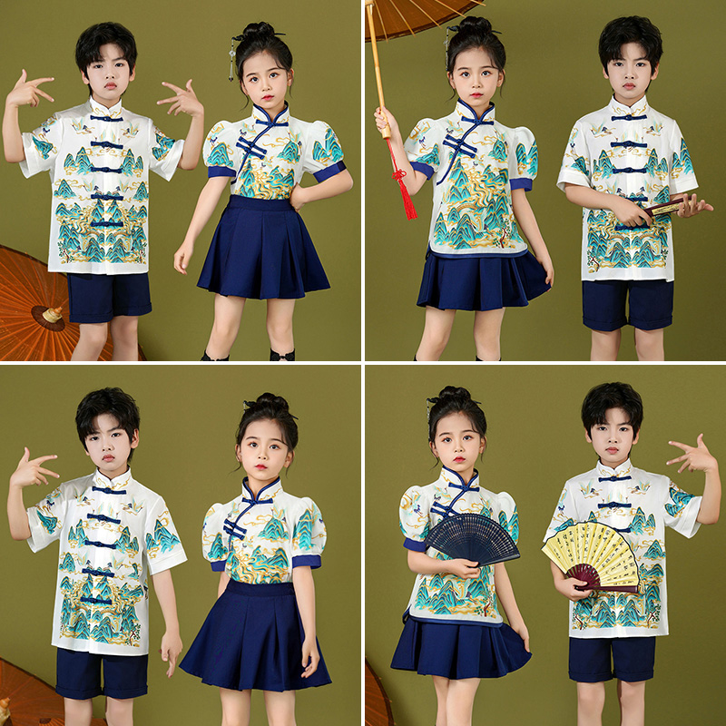 儿童中国风演出服小学生合唱国风套装幼儿园啦啦队开学礼服表演服