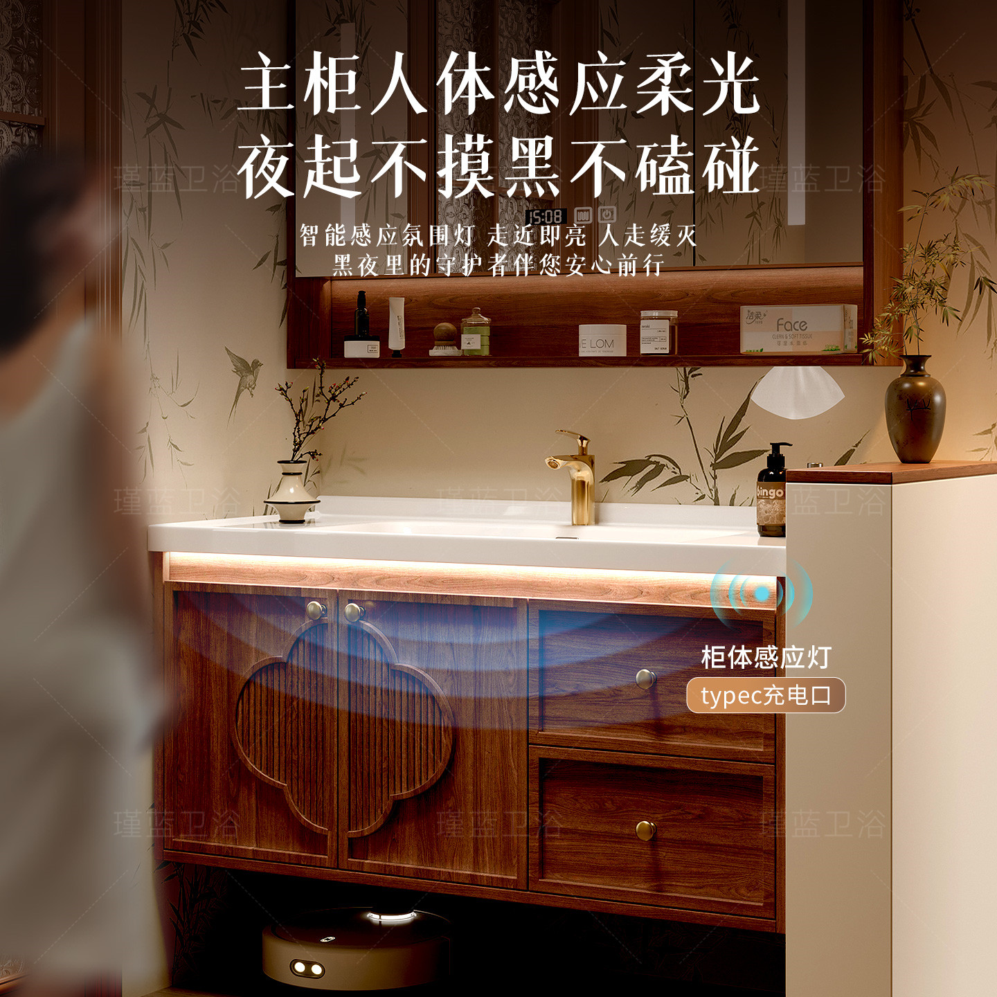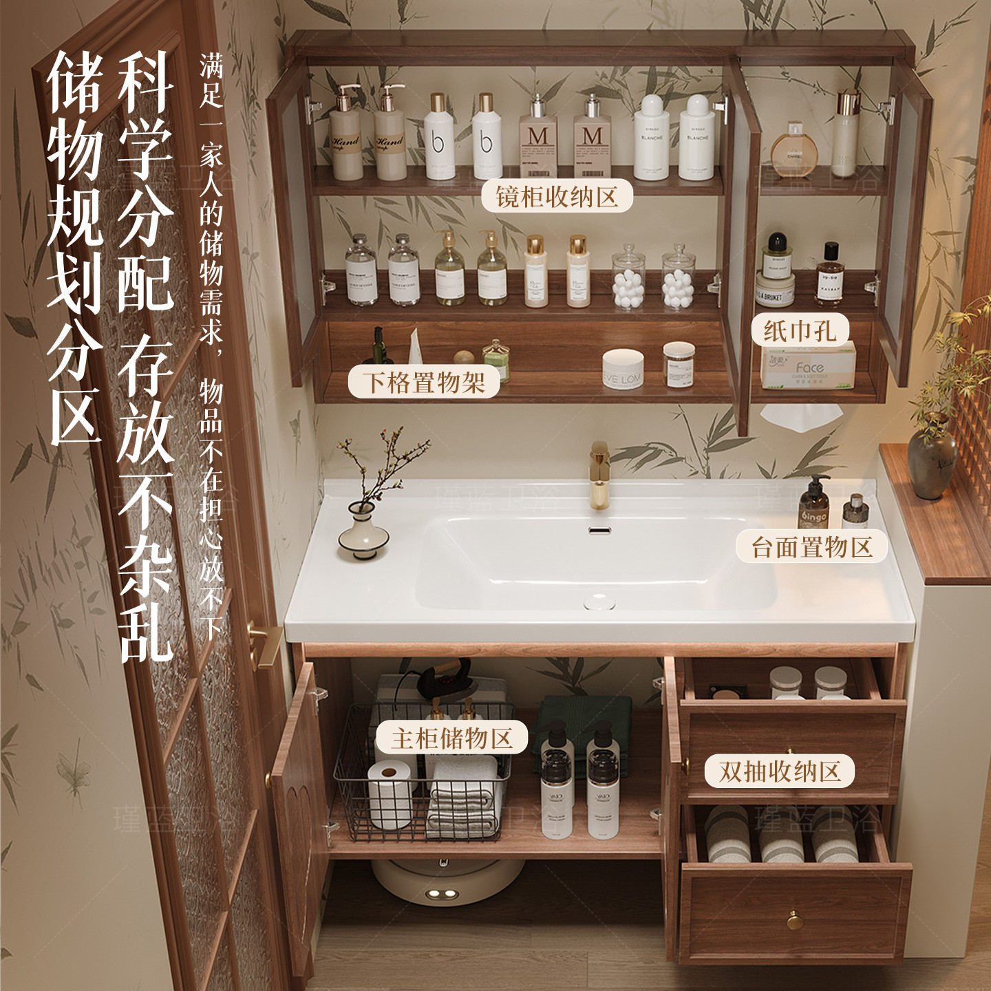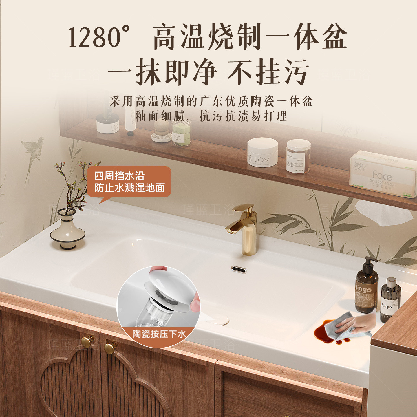 宋氏美学实木浴室柜陶瓷一体盆中古风卫生间洗漱台洗手洗脸盆组合
