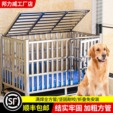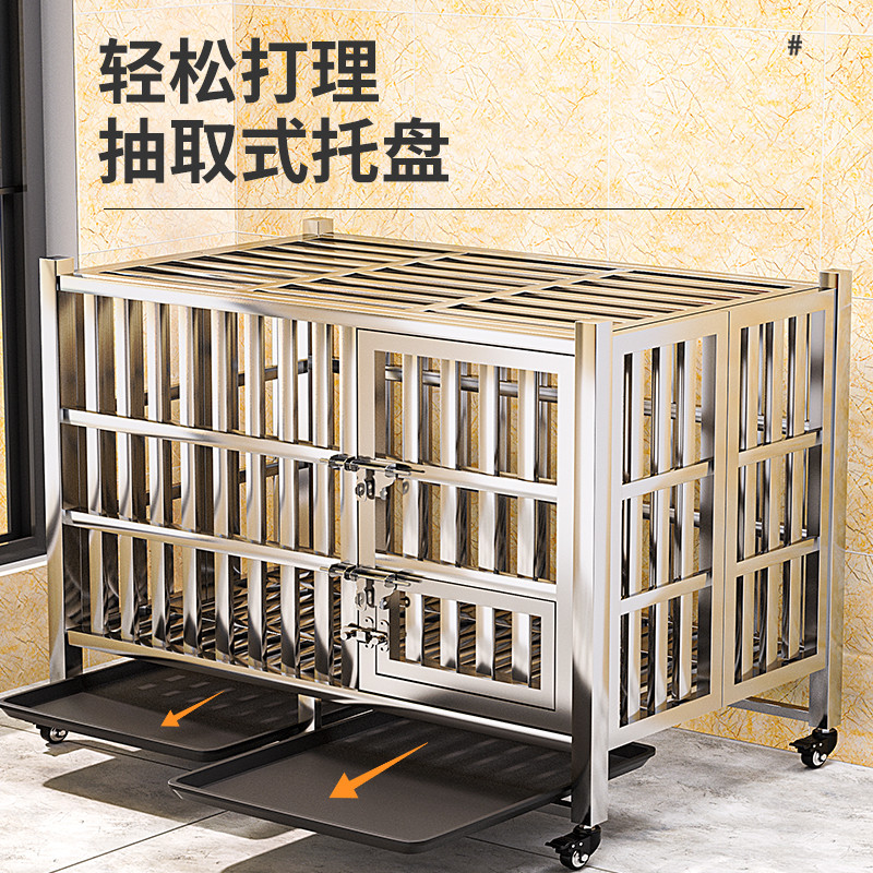 304不锈钢折叠狗笼子中型犬室外带厕所大型犬狗笼家用室内狗笼子