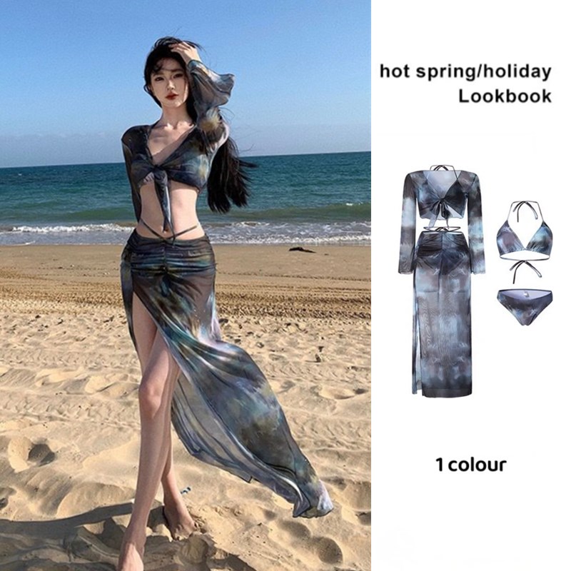 泳衣女比基尼四件套少女小胸聚拢韩版ins纯欲风2025新款温泉度假