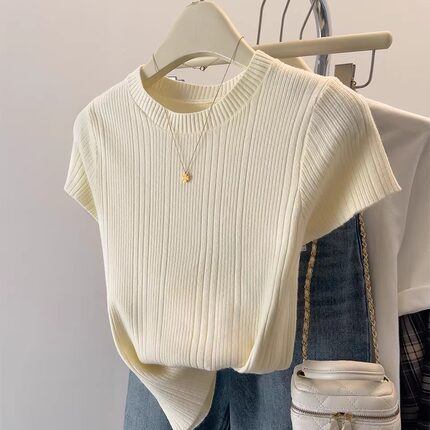夏季新款韩版外穿时尚设计感短袖T恤修身显瘦木耳边泡泡袖上衣女
