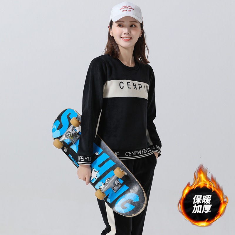 日本品质秋冬新款女士休闲运动套装时尚加绒家居可外穿休闲卫衣卫