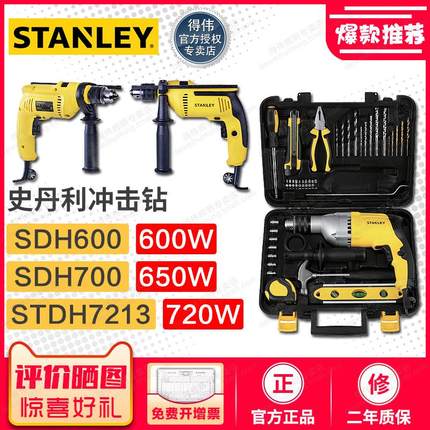 史丹利多功能冲击钻SDH600/700 STDH7213工业级家用手电钻套装