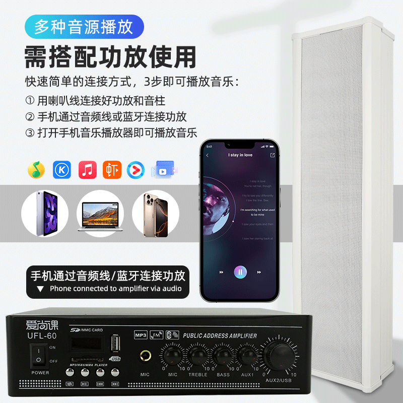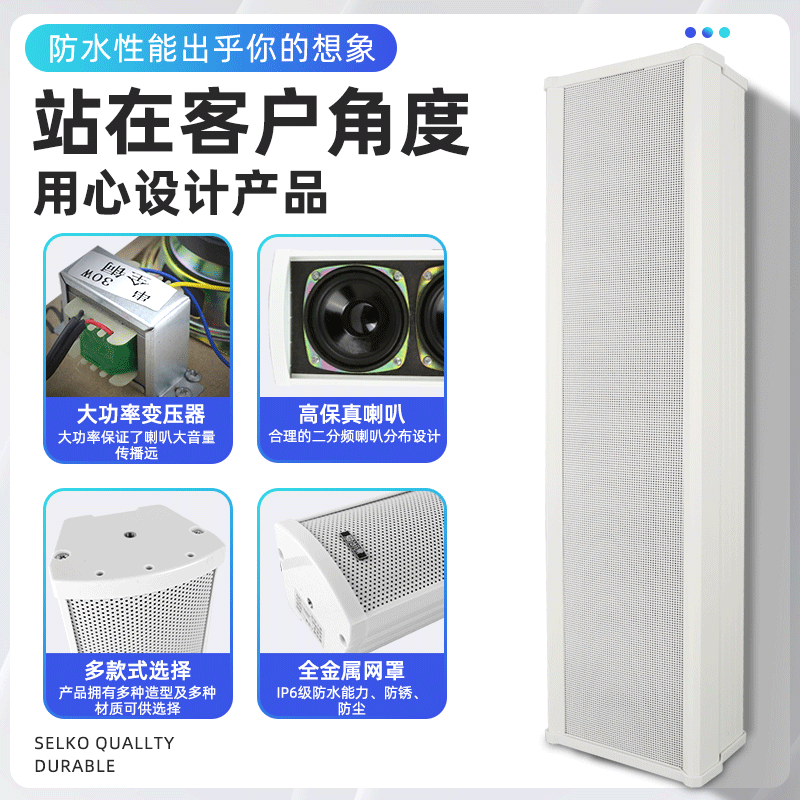 爱尚课 E20定压室外防水音柱店铺户外音箱音响广播壁挂喇叭30w40w