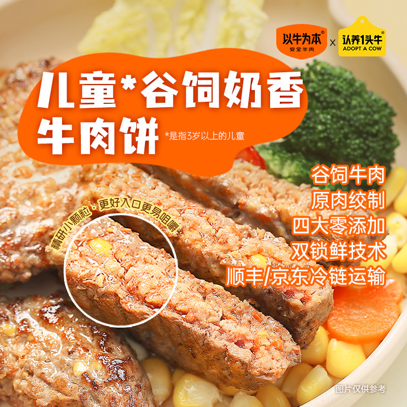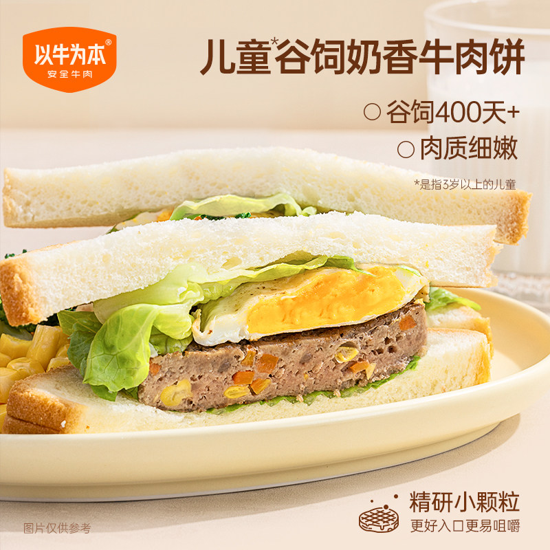 【认养一头牛】以牛为本谷饲奶香儿童牛肉饼学生营养早餐汉堡肉饼