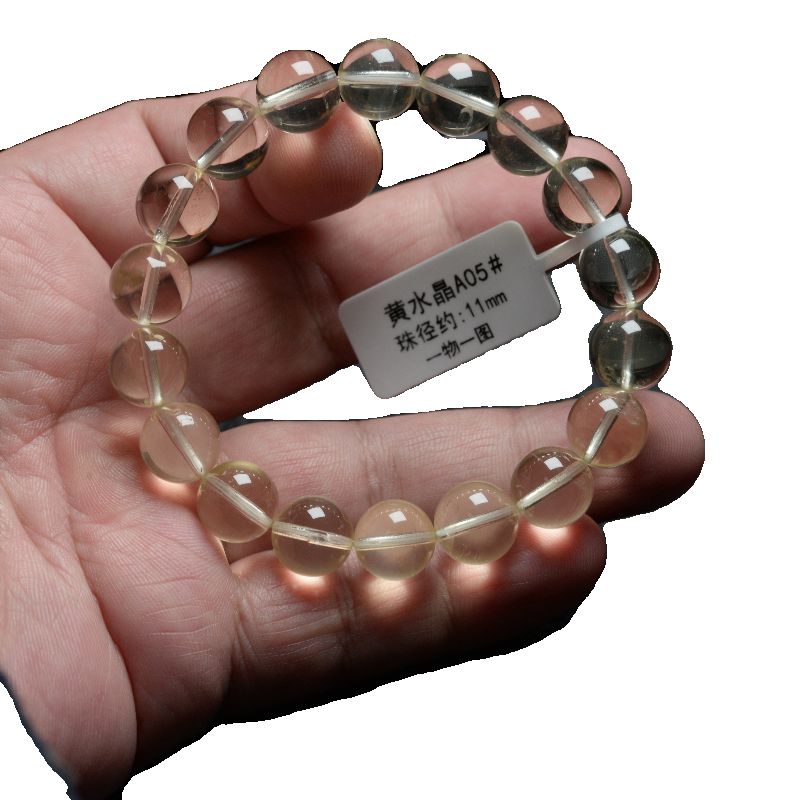 无优化柠檬黄水晶手链男女款天然淡黄色冰种手串饰品财富之石礼物