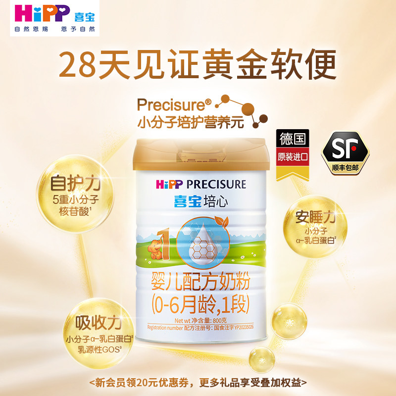 【官方正品】HiPP喜宝培心婴幼儿小分子奶粉1段800g*3罐0-6月进口