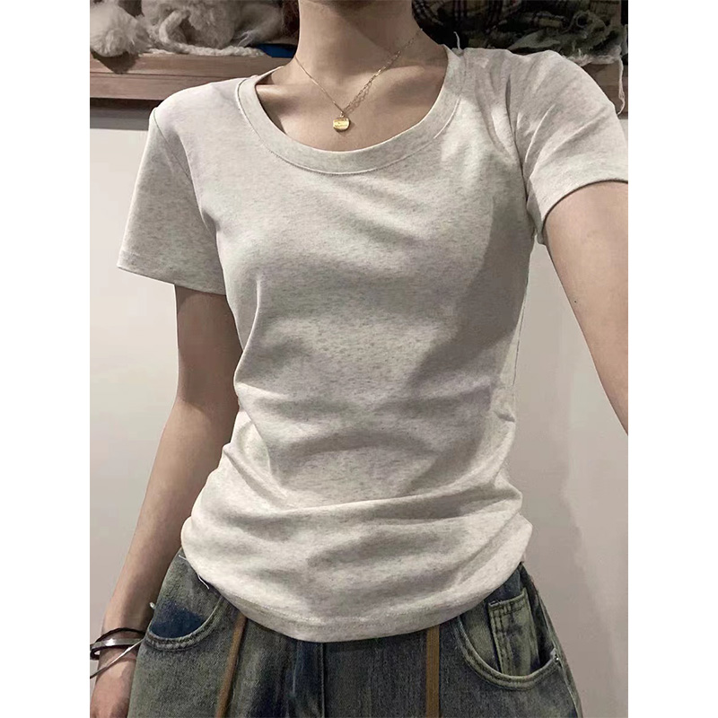 美式正肩U领设计感短袖t恤女夏季新款纯棉修身辣妹显瘦基础款上衣