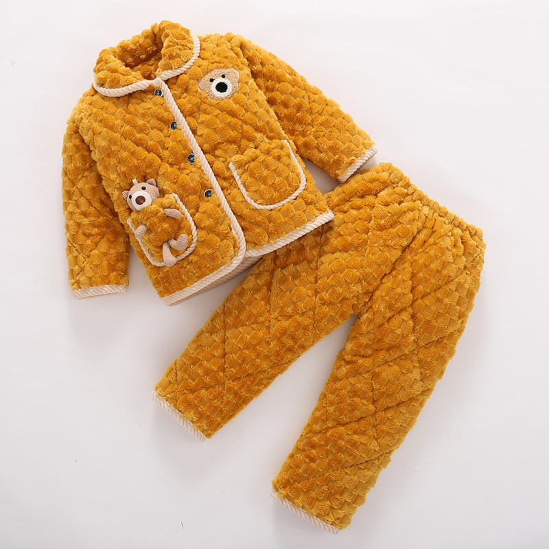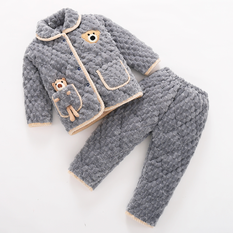 冬季儿童夹棉睡衣男童三层加厚款法兰绒女童男孩宝宝珊瑚绒家居服