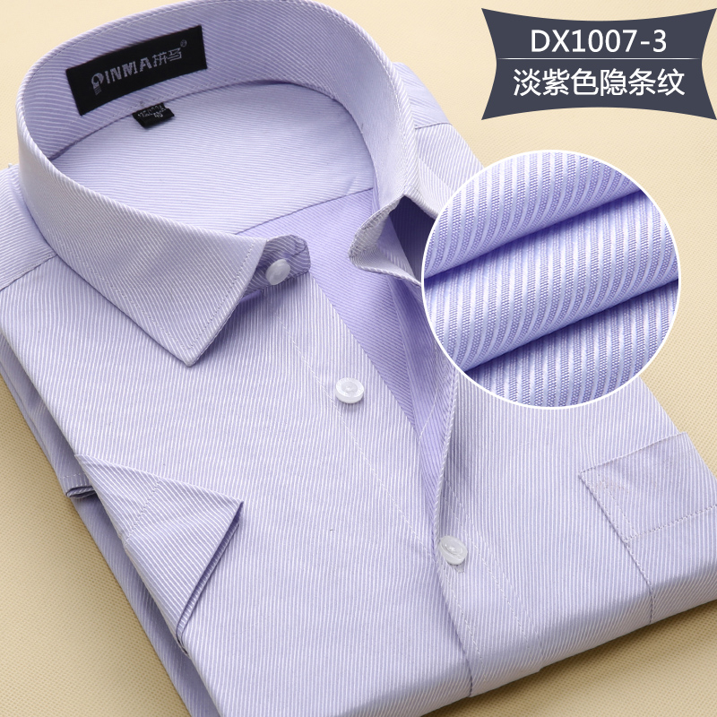 夏季衬衫男短袖商务职业工装正装浅蓝色斜纹半袖衬衣男寸衫工作服